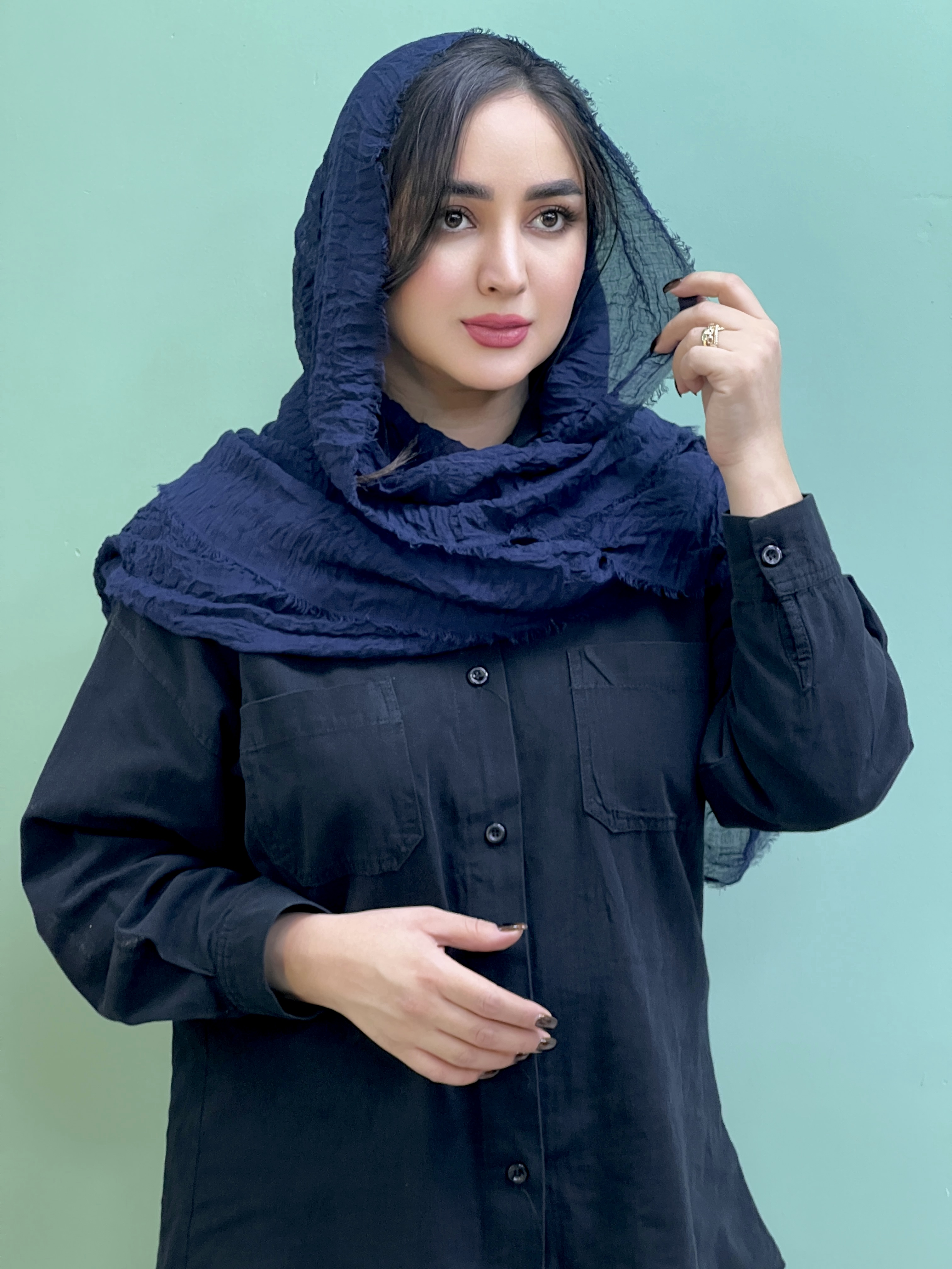 شال لینن چروک لبه ریش سورمه ای۳۹۸٬۰۰۰ تومان