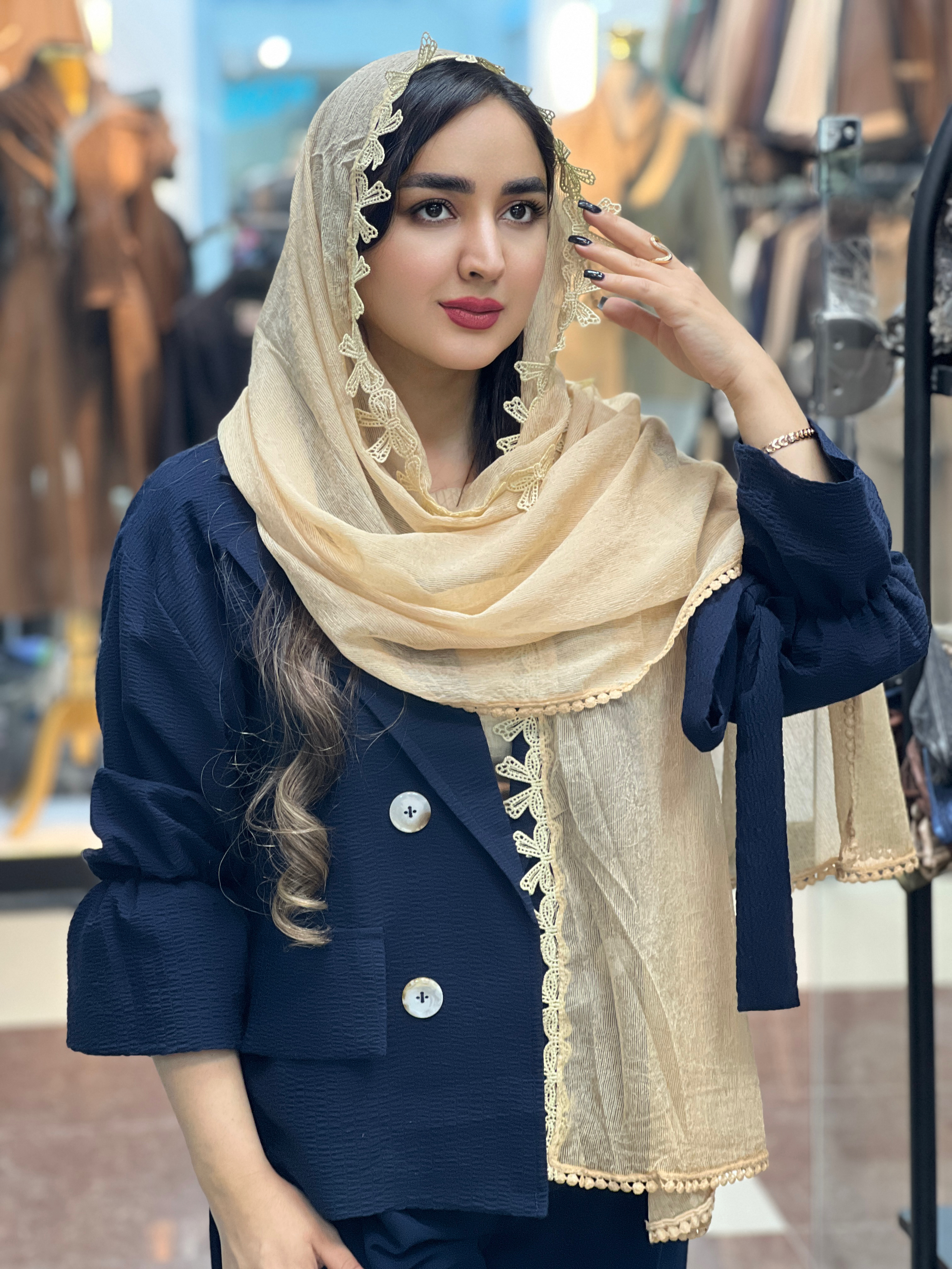 شال حریر لبه پاپیونی و عدسی یکی از شیکترین و خاصترین انتخابها برای استایلهای مجلسی و روزمره است. این شال با جنس حریر سبک و لطیف، ایستایی فوقالعادهای دارد و بهدلیل طراحی منحصربهفرد لبه پاپیونی و عدسی، جلوهای زنانه، ظریف و بسیار جذاب ایجاد میکند. اگر بهدنبال شالی هستید که هم ظاهر شما را متفاوت کند و هم با انواع مانتوهای ساده و مجلسی ست شود، این مدل یک انتخاب ایدهآل است.