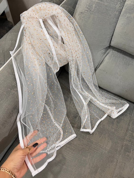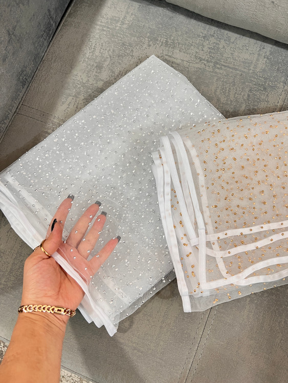 شال توری سفید طلاکوب و نقرهکوب یکی از شیکترین و پرفروشترین مدلهای مجلسی است که با طراحی ظریف و درخشان خود، استایلی لوکس و چشمنواز ایجاد میکند. این شال با پارچه توری سبک و لطیف، مناسب مهمانیها، جشنها، عروسی و استایلهای رسمی است. ترکیب رنگ سفید با طرحهای طلاکوب و نقرهکوب جلوهای خاص و متفاوت به این شال میبخشد و آن را به انتخابی ایدهآل برای بانوان خوشسلیقه تبدیل میکند.