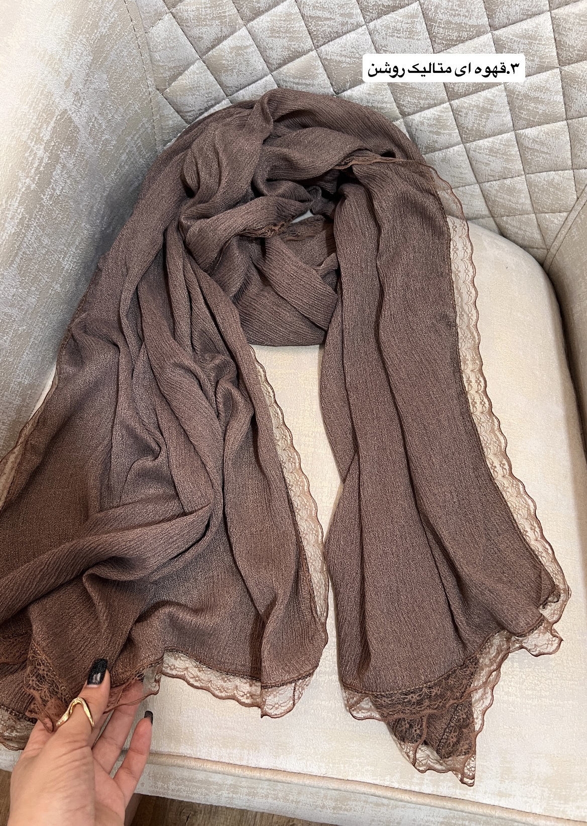 شال برشکا لبه گیپور یکی از شیکترین و پرفروشترین مدلهای شال زنانه است که با طراحی ظریف و لبههای گیپور، استایلی خاص و متفاوت ایجاد میکند. این شال با جنس سبک و لطیف، مناسب استفاده روزمره، مهمانی و استایلهای رسمی است و بهراحتی با انواع مانتو و لباسهای مجلسی ست میشود.