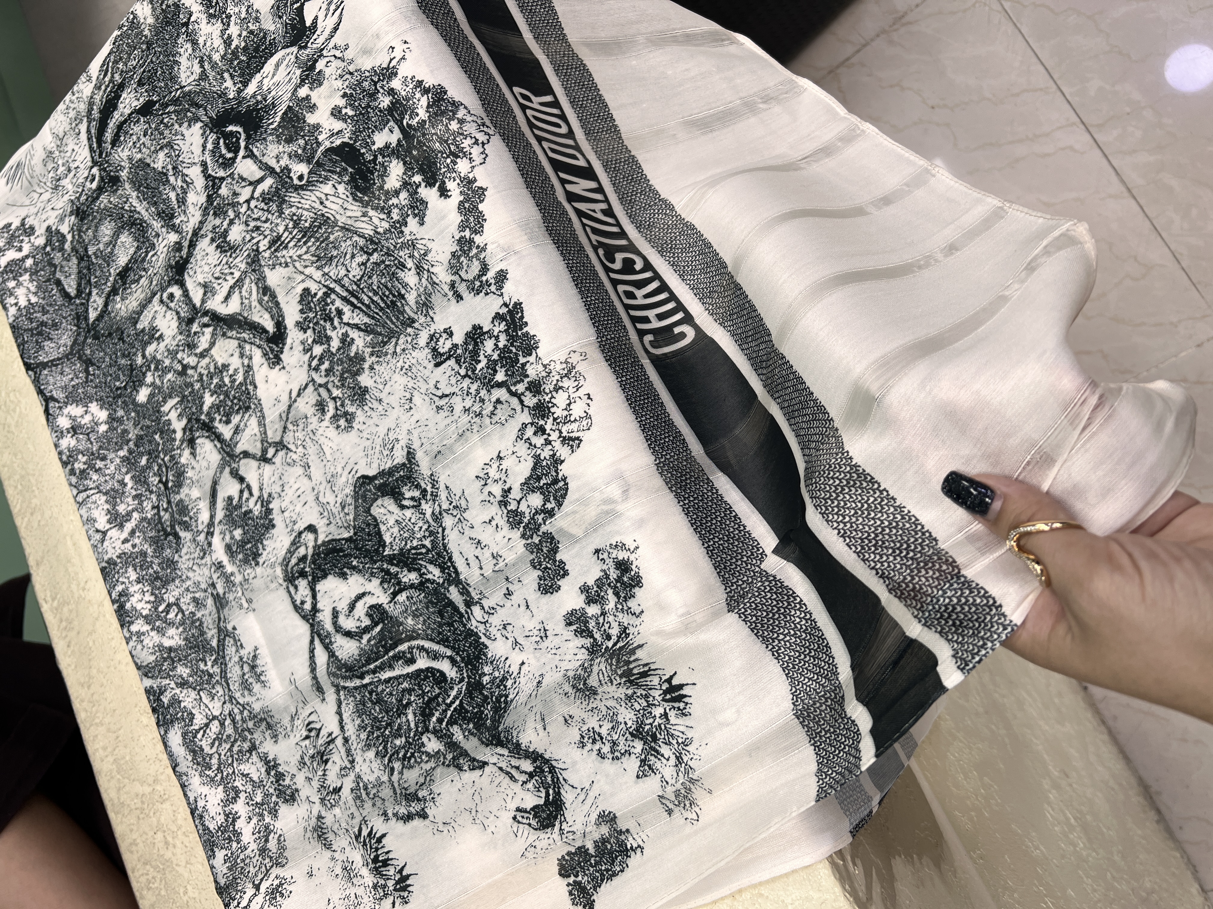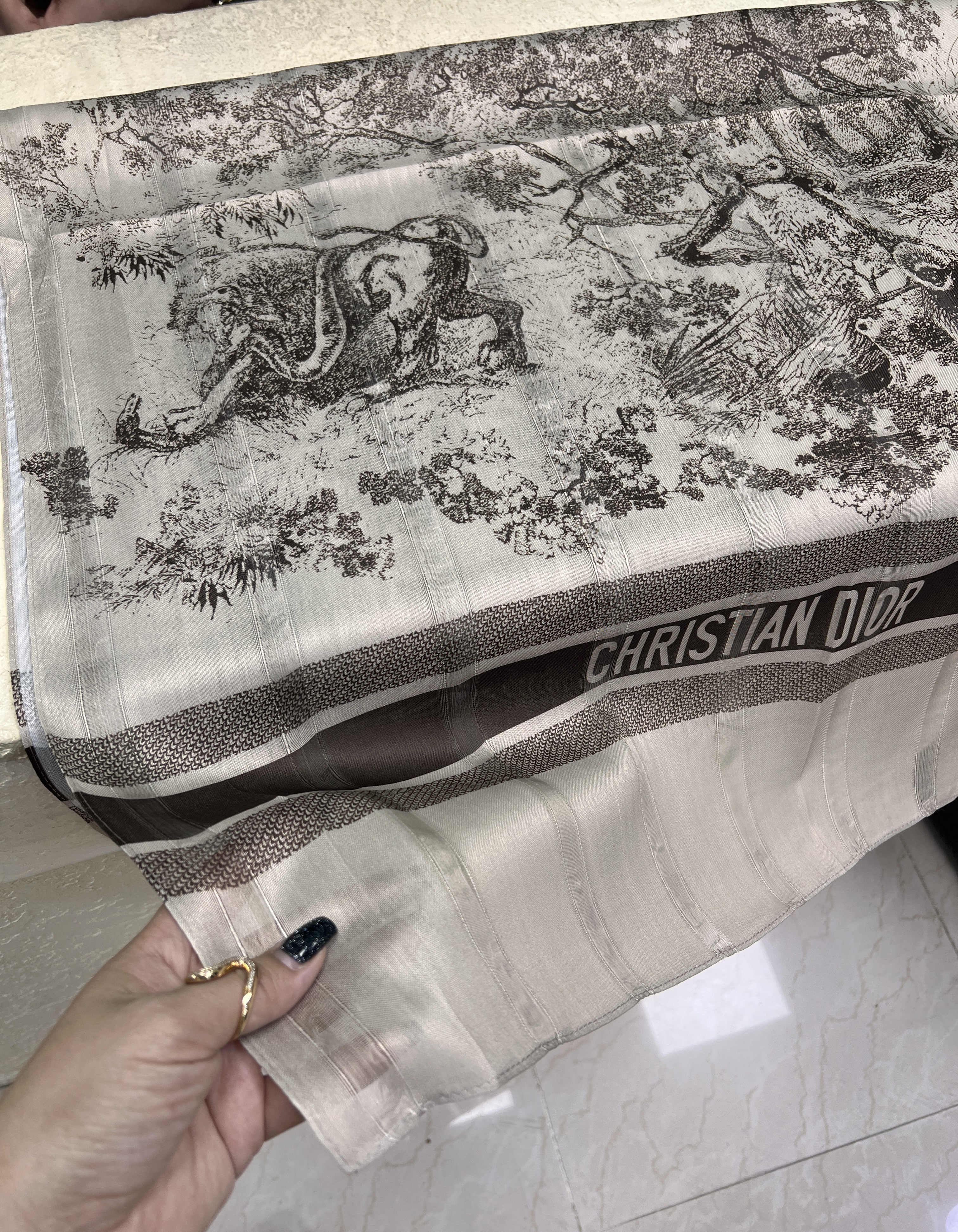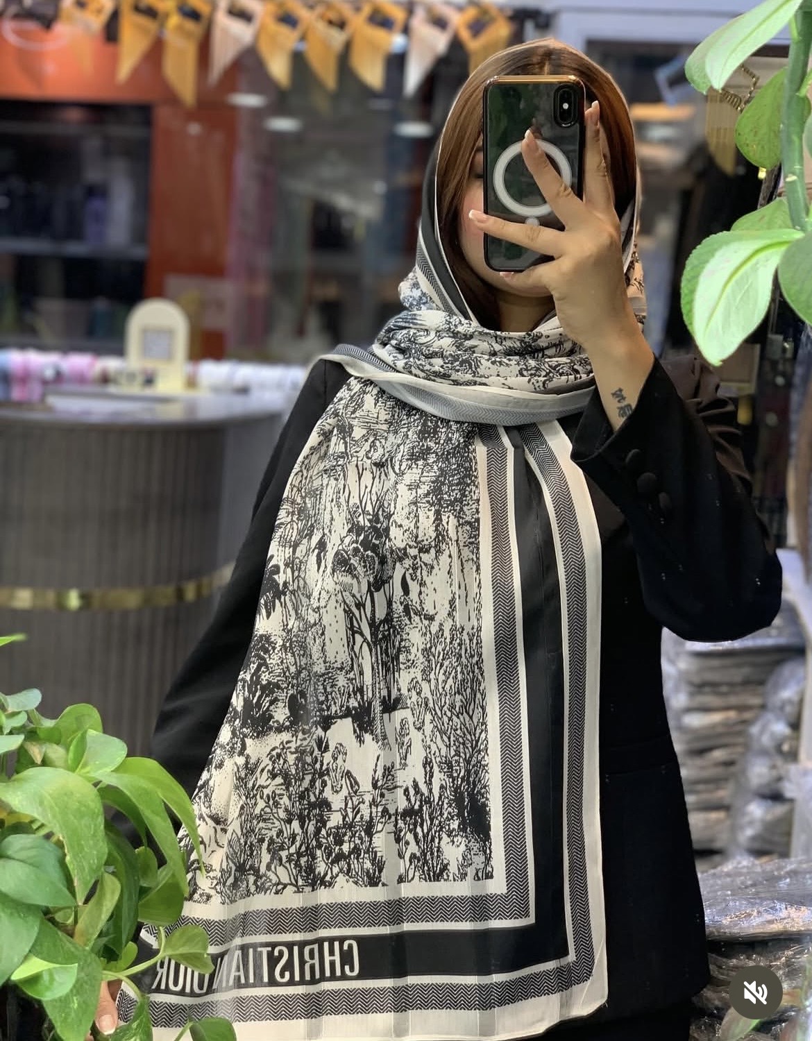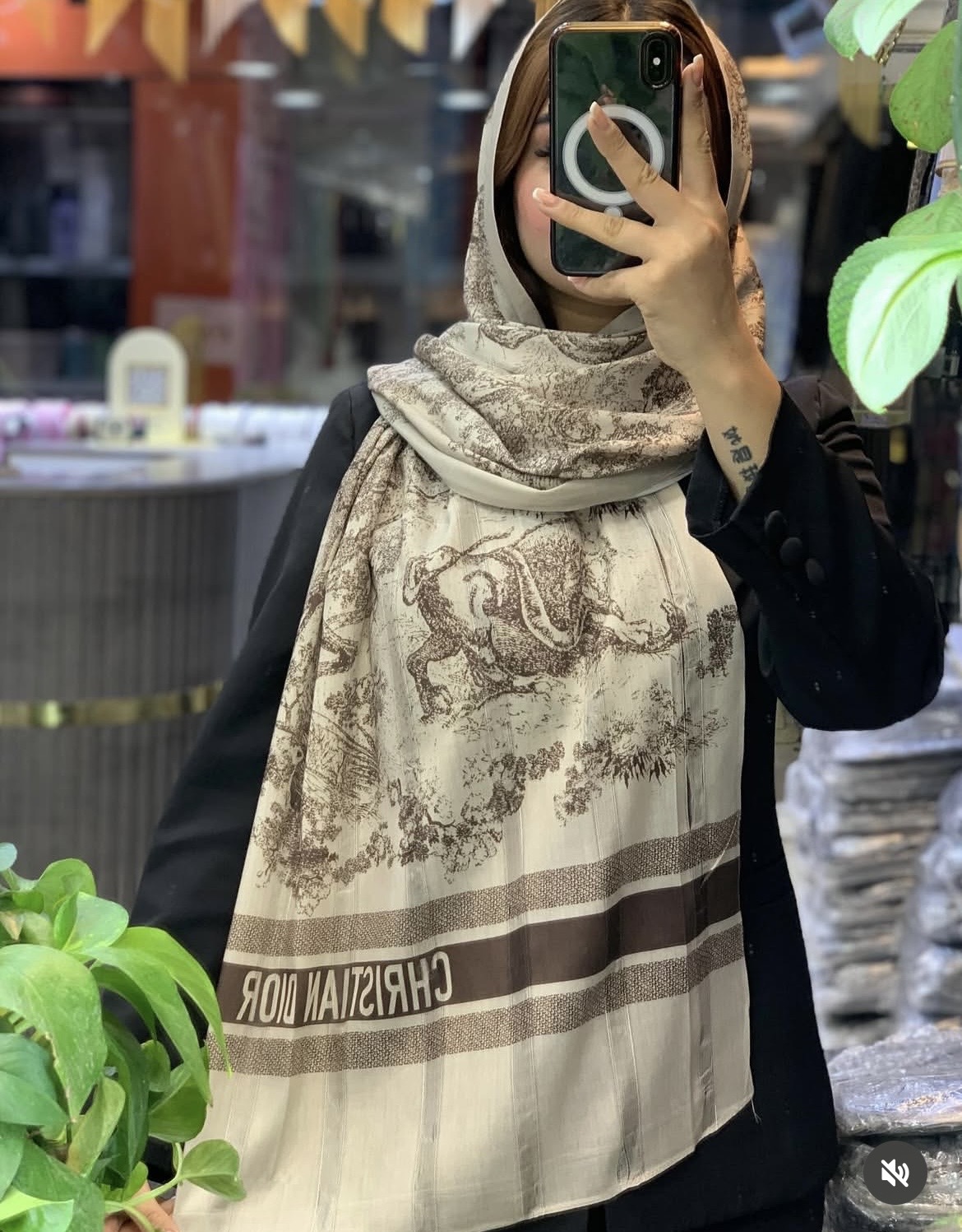 شال نخ ابریشم دیور جنگلی رنگ مشکی و موکا وارداتی
