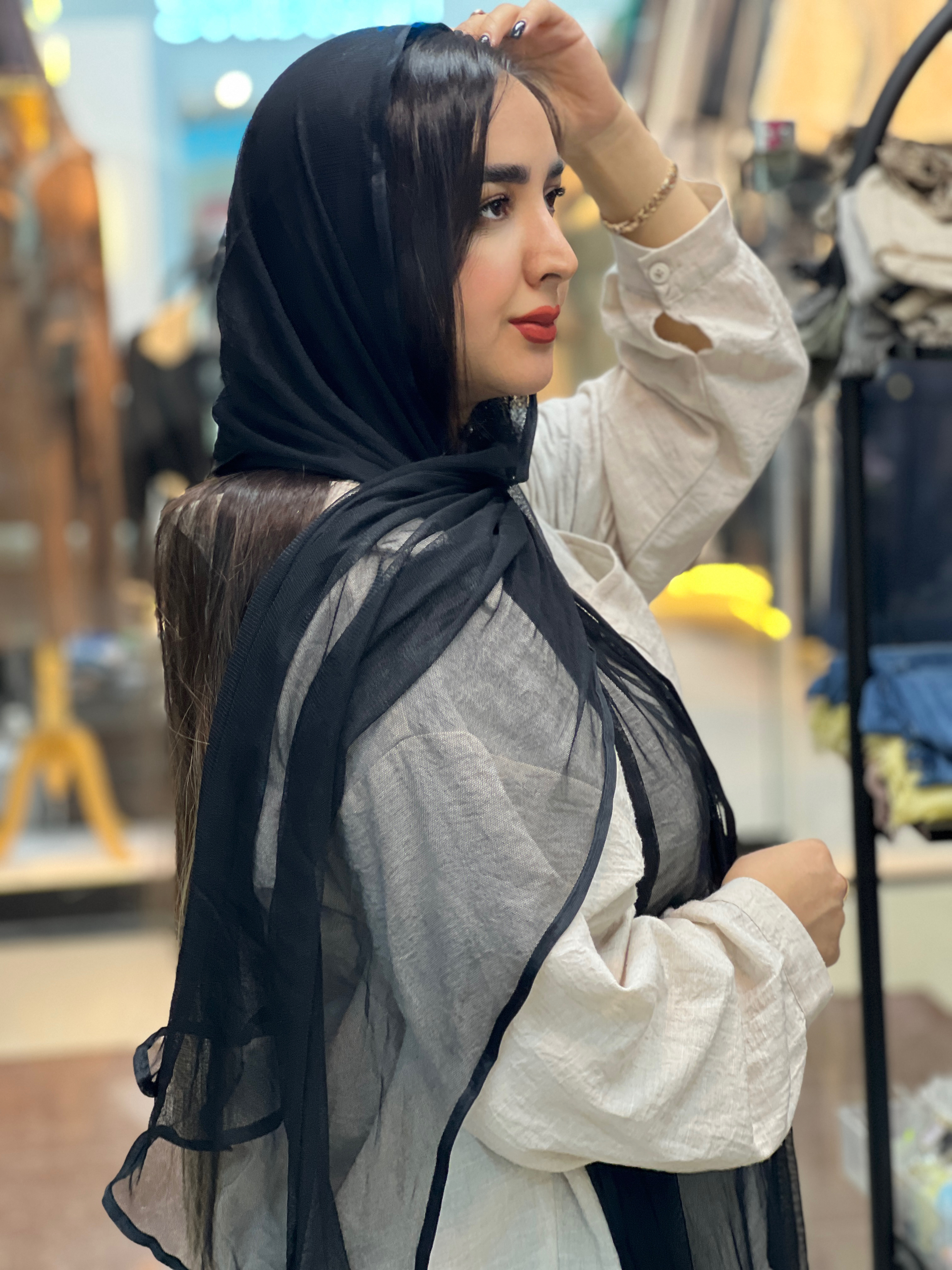 شال توری مشکی یکی از شیکترین و پرکاربردترین انتخابها برای استایلهای رسمی و مجلسی است. بافت ظریف و سبک این شال، جلوهای زنانه و خاص ایجاد میکند و بهخوبی روی سر میایستد. رنگ مشکی همیشه انتخابی کلاسیک و جذاب بوده و بهراحتی با هر رنگ و استایلی ست میشود. این شال برای مهمانیها، مراسمها و حتی استفاده روزمره گزینهای ایدهآل است و به استایل شما ظرافت و جذابیت بیشتری میبخشد.