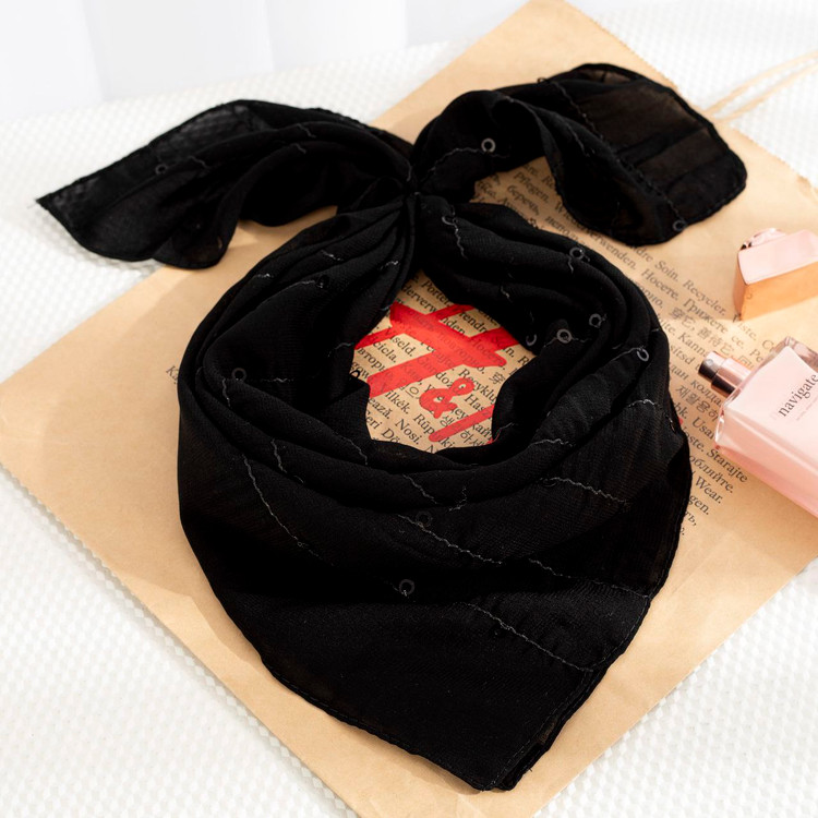 مینی اسکارف مشکی پولکی مزونی یکی از شیکترین اکسسوریهای زنانه است که برای استایلهای رسمی، مجلسی و مزونی انتخابی ایدهآل محسوب میشود. این اسکارف با جنس لطیف، سبک و ایستایی عالی طراحی شده و وجود پولکهای ظریف و درخشان جلوهای لوکس و چشمگیر به آن میبخشد. رنگ مشکی باعث شده این مدل با انواع لباسهای مزونی، مانتوهای مجلسی، کتوشلوار زنانه و حتی استایلهای ساده روزمره بهراحتی ست شود.