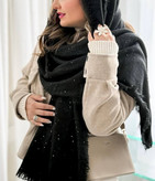 شال پاییزه بوکله وارداتی لبه ریش مدل پولکدار مشکی