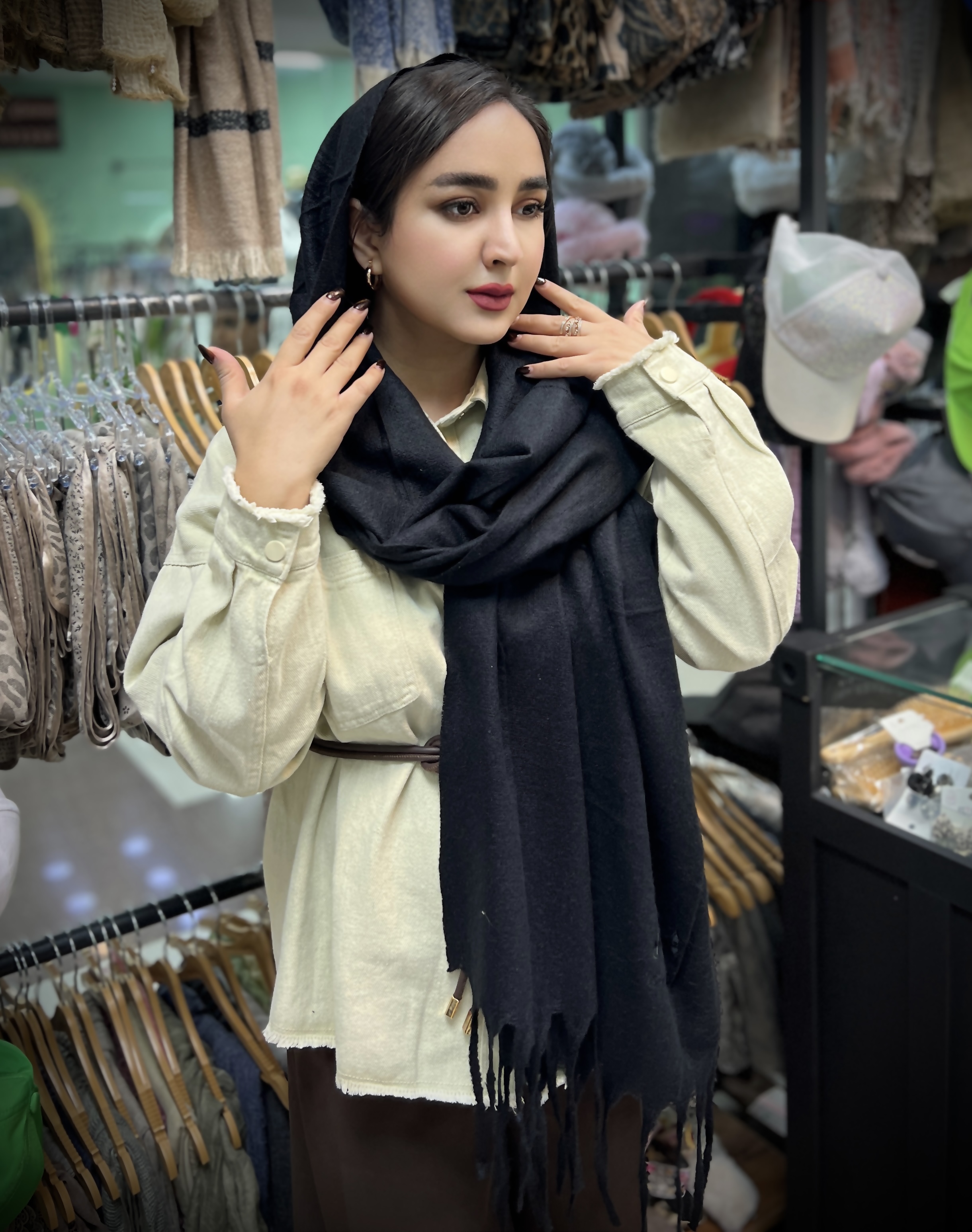شال موهر ریشه فیتیله ای تک رنگ مشکی