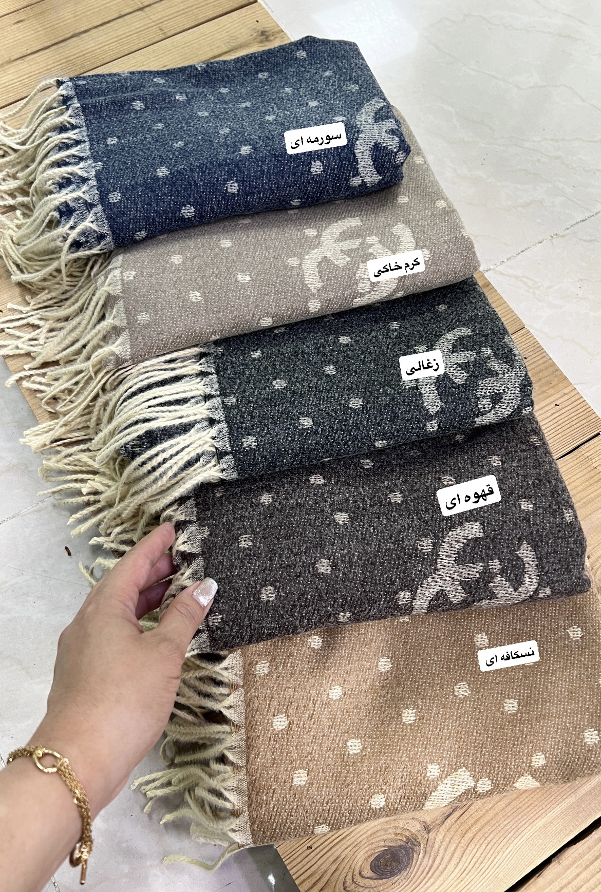 شال موهر زمستانه وارداتی ریشه فیتیله ای نرم و سبک طرح شَنِل