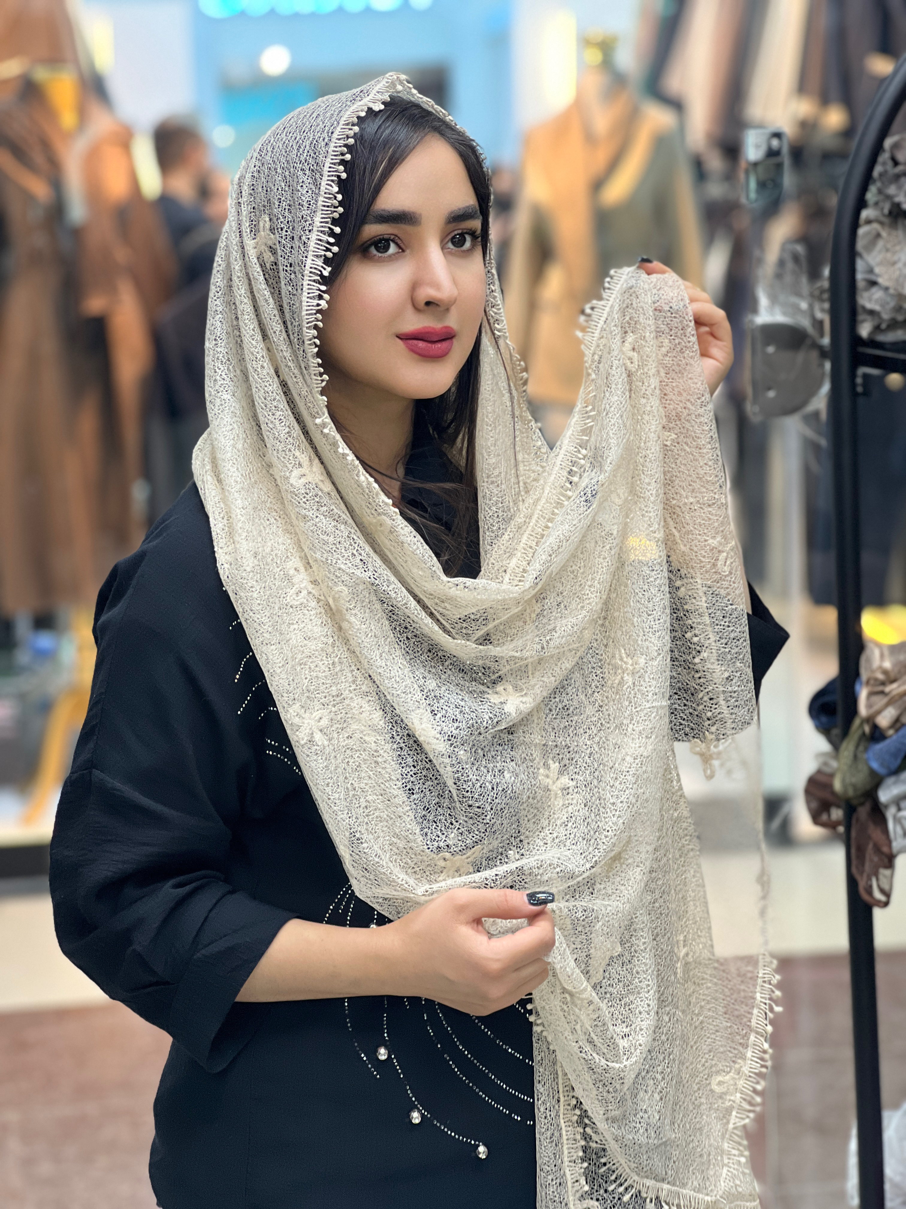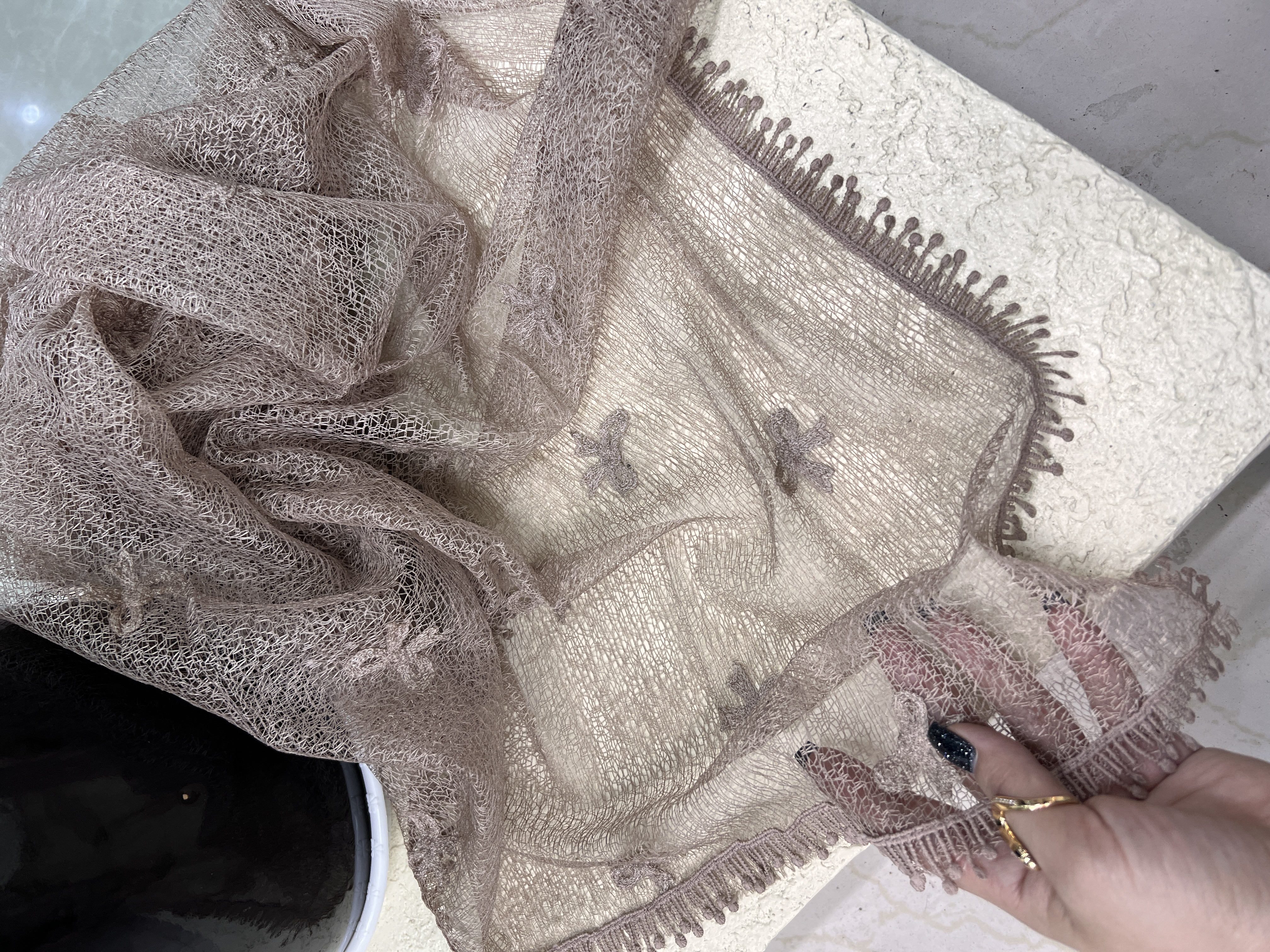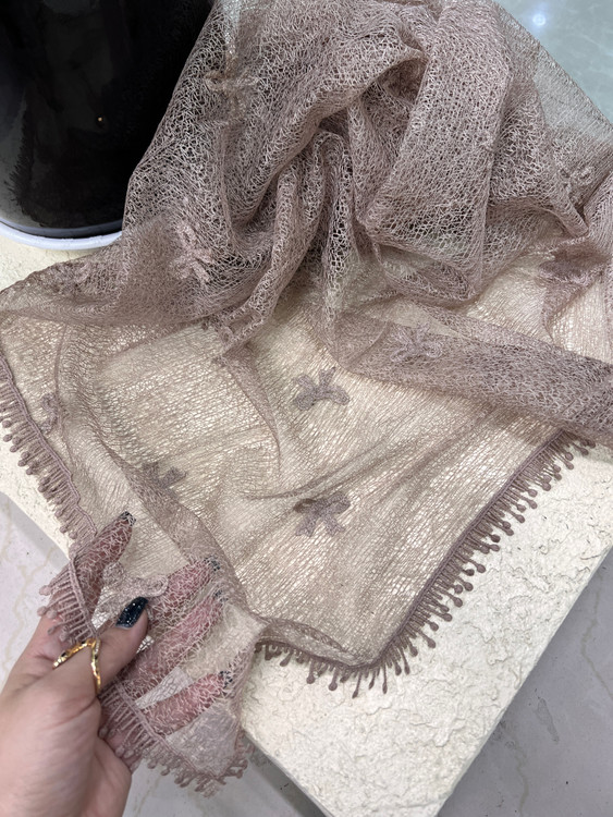 در شال گیپور عنکبوتی پاپیون های ظریف خامه دوزی شده وبا حاشیه زیباش نماش چندین برابر شده